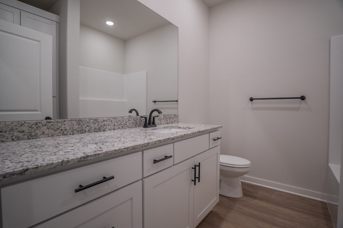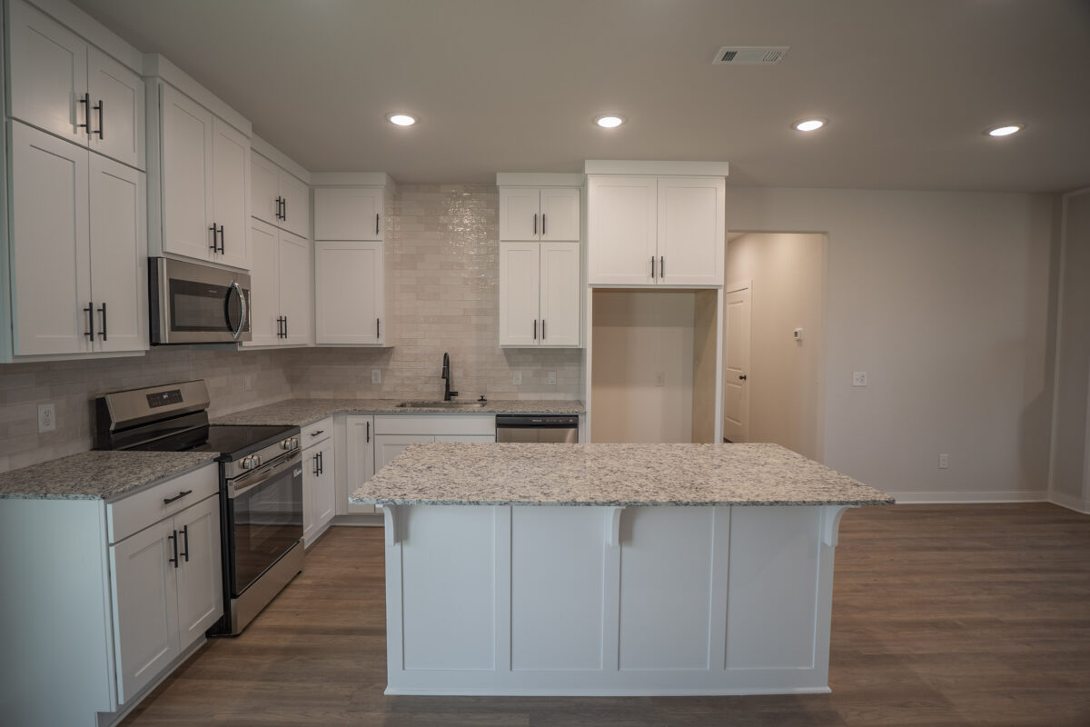 You will enjoy this beautiful new home with open living/dining/kitchen. Kitchen features granite countertops and island, with white cabinetry. Electric logs in living area. Tile shower and walk-in closet in bedroom. Two flex rooms provide perfect space for an office, craft room, workout room, etc. Luxury vinyl plank throughout. Access to back covered deck off of kitchen area. Agent owned.